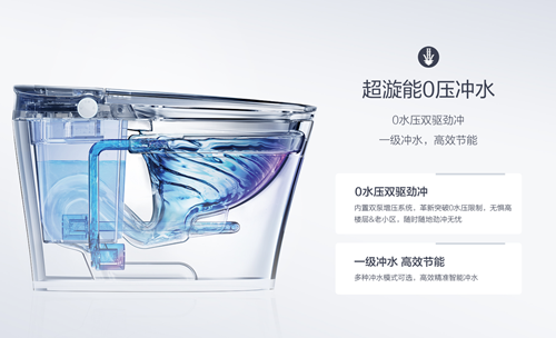 超漩能0壓沖水技術,0水壓雙驅勁沖,一級沖水,高效節能