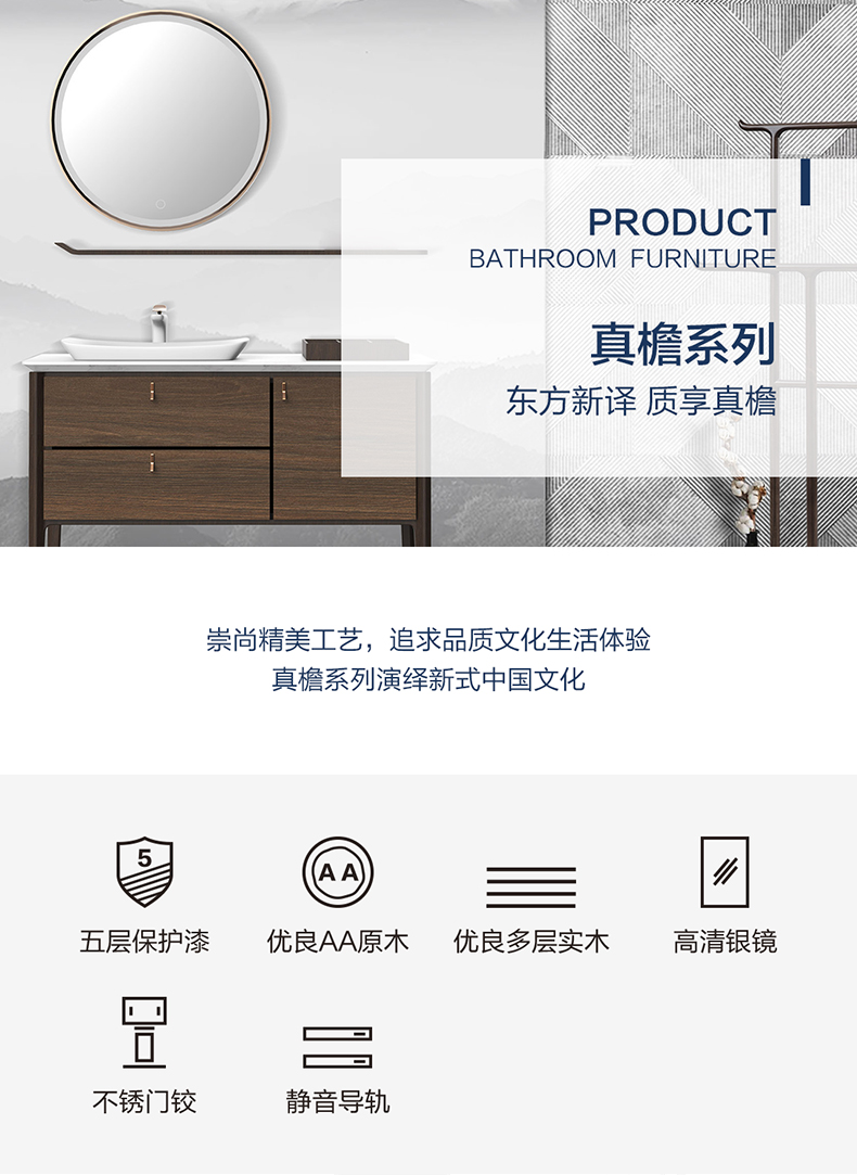 HBT106801N-100 (經典胡桃木色)實木浴室柜