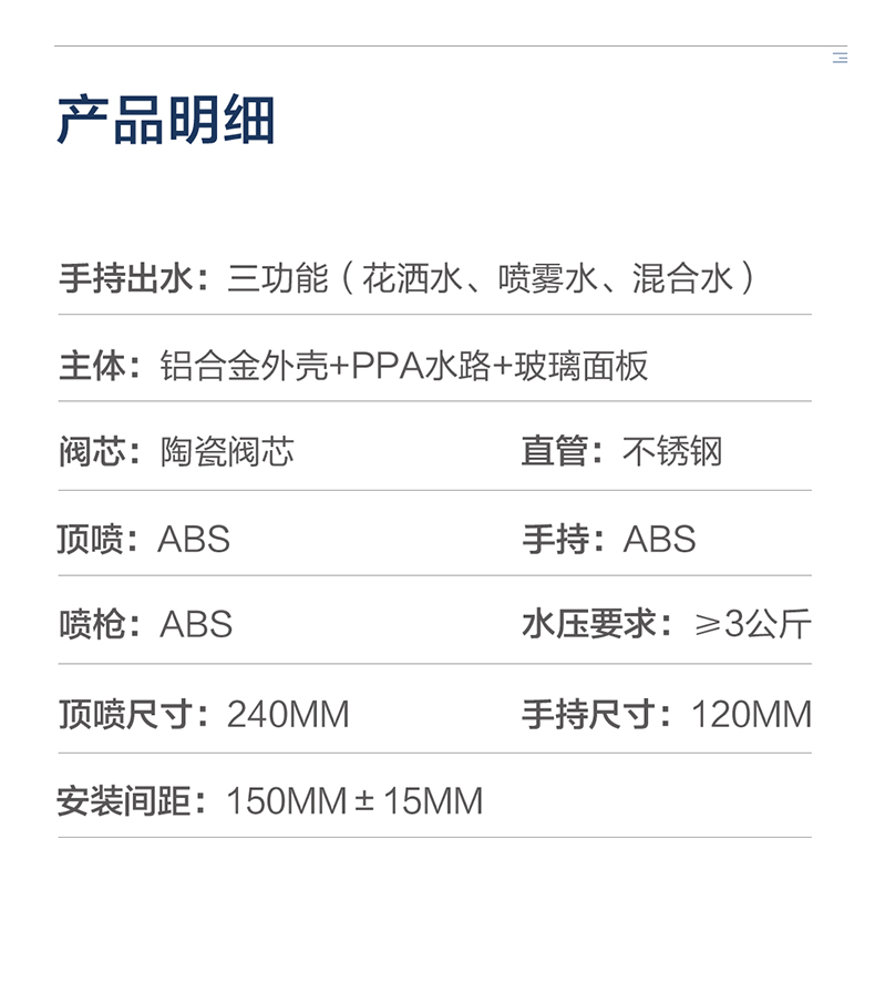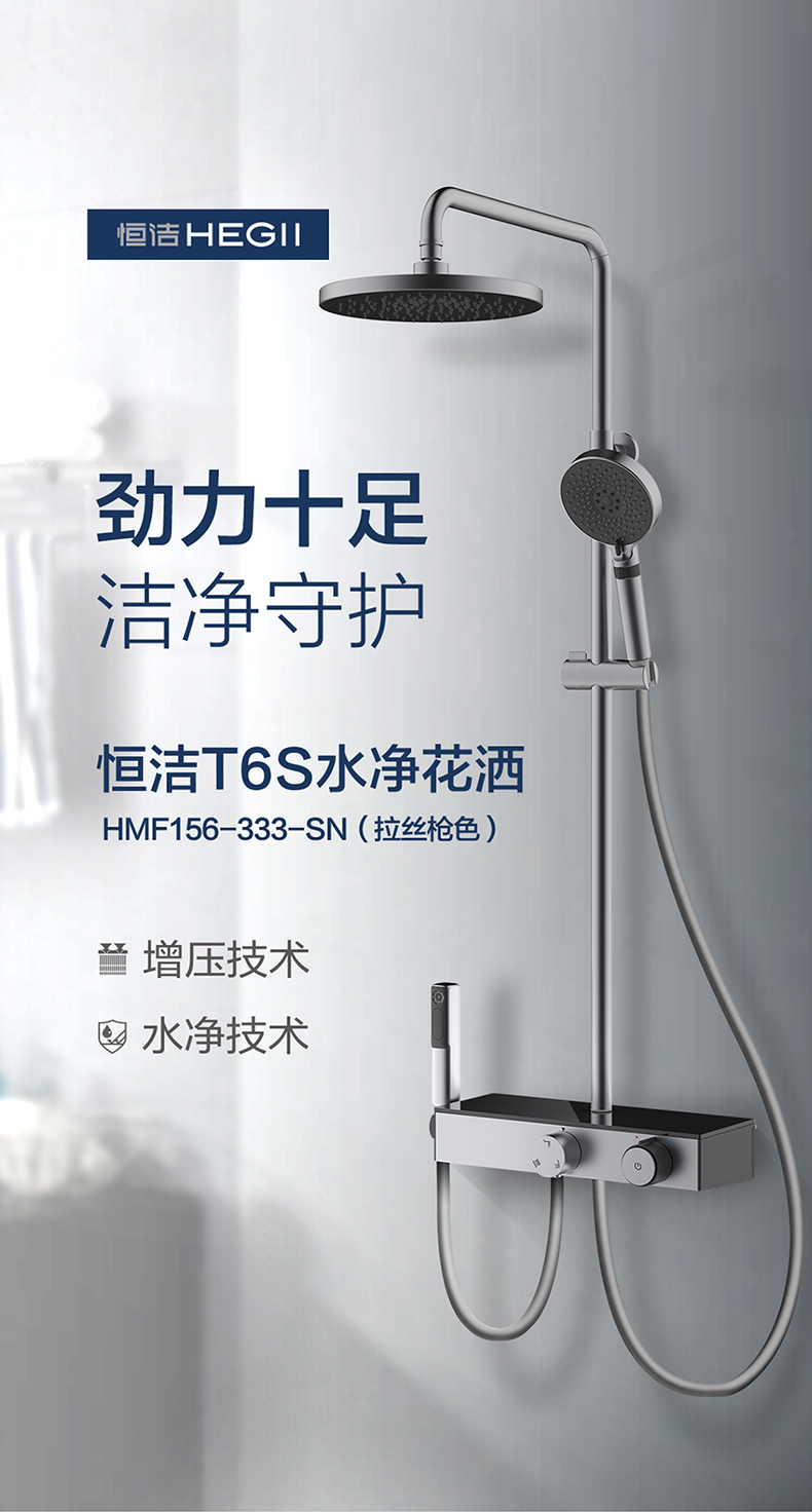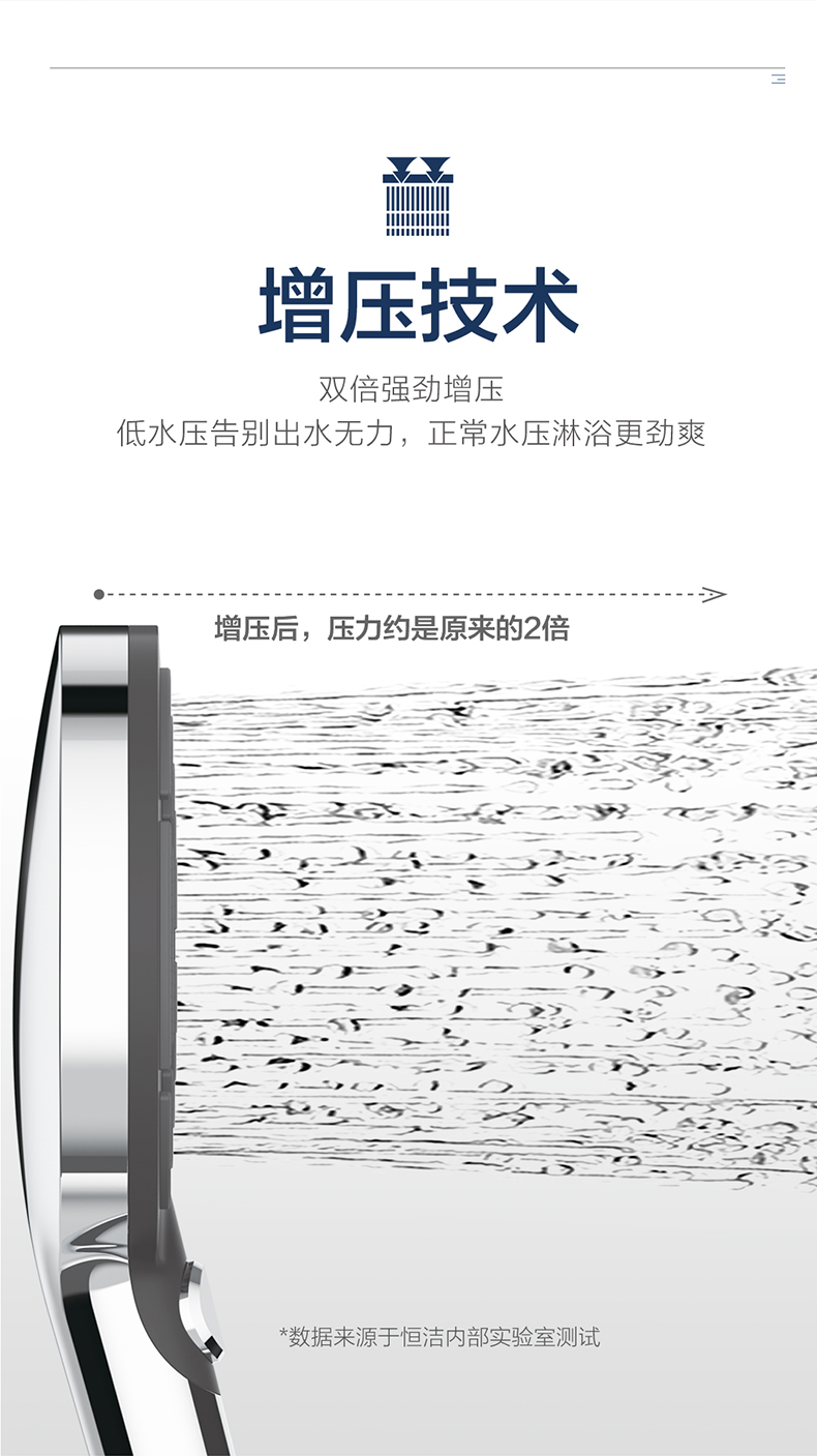 • 恒潔增壓技術,0.45mm極致細孔設計,出水密集柔和