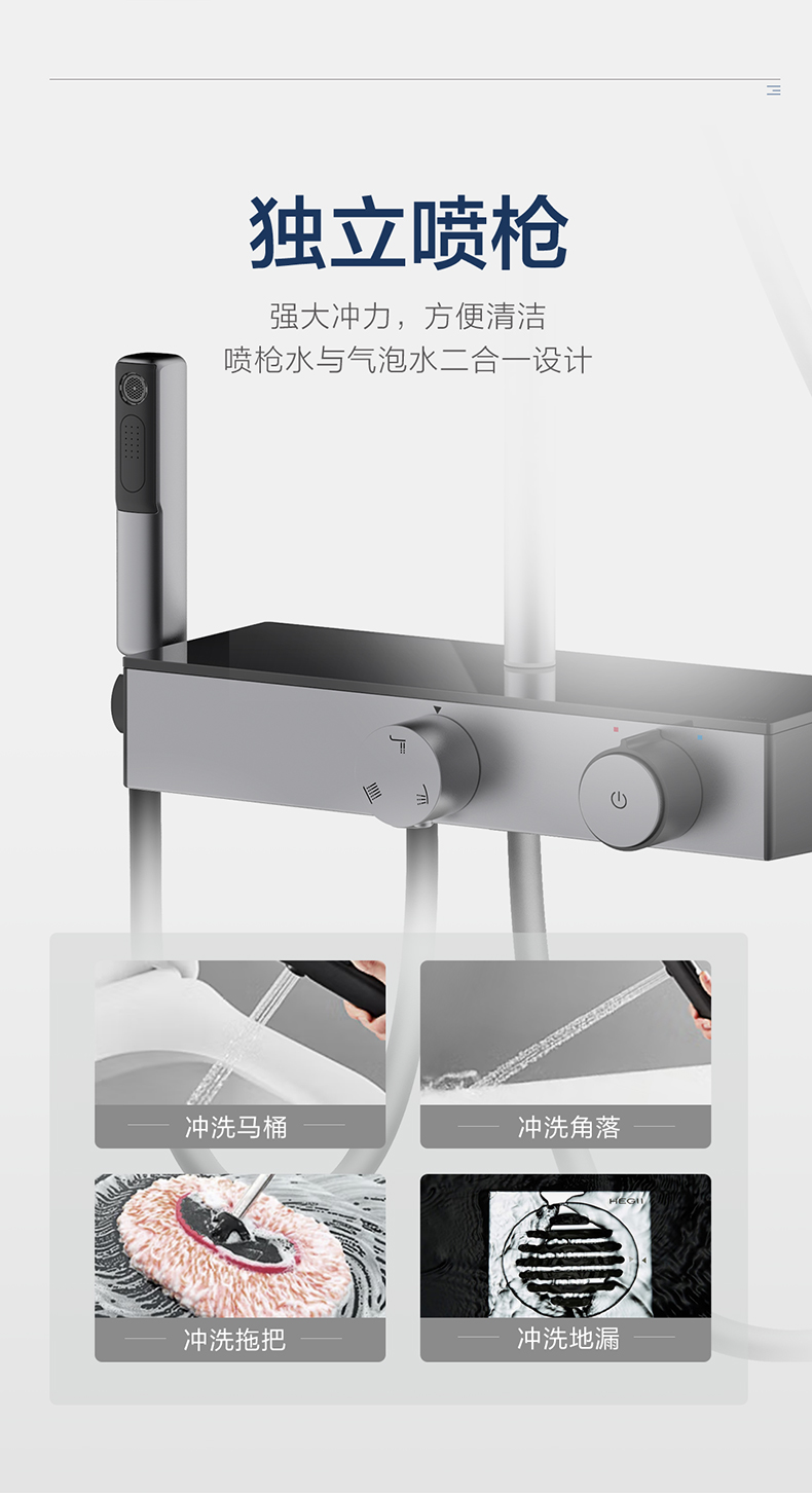 • 獨立噴槍,澎湃水力,輕松清潔